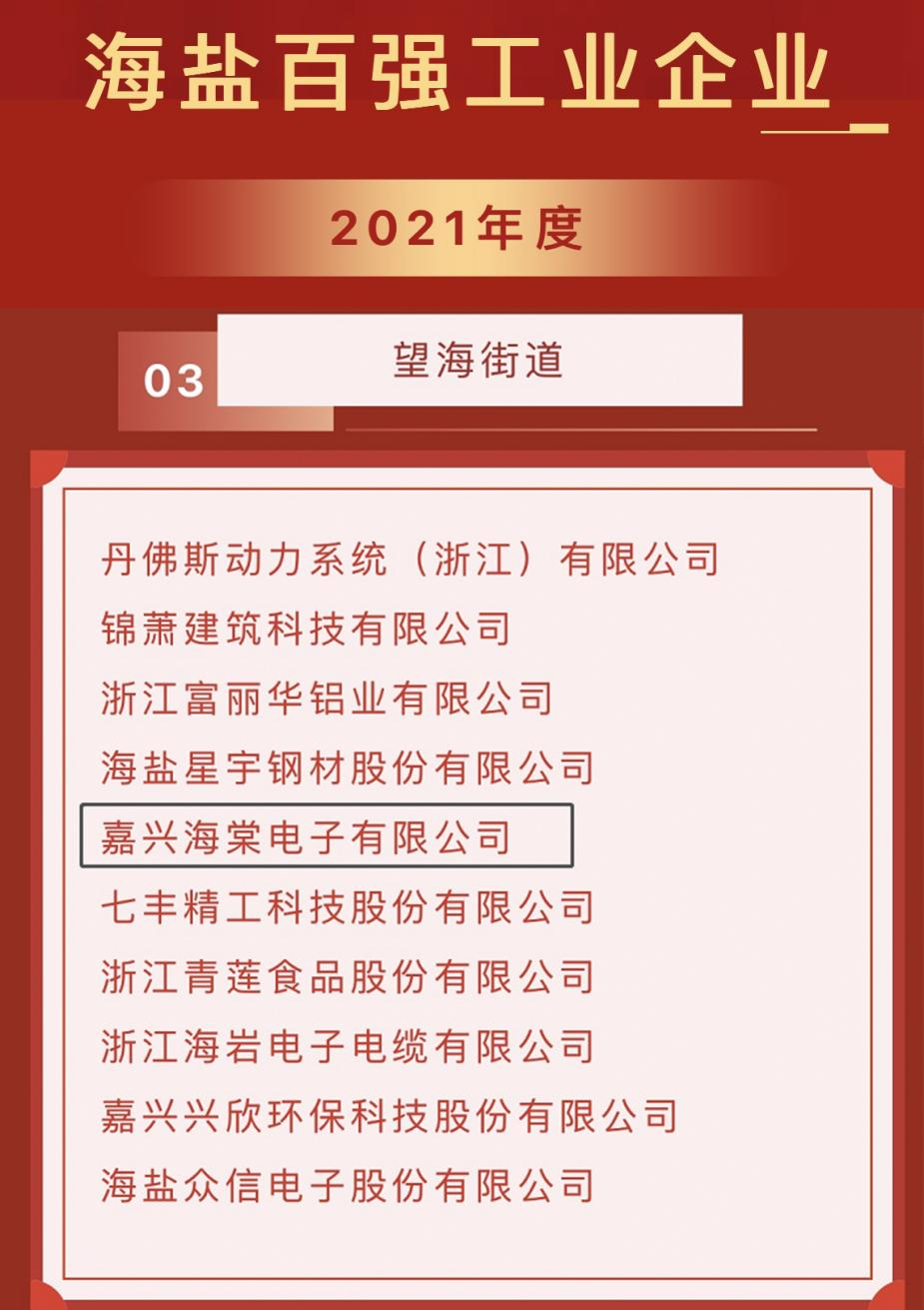 喜訊!嘉興海棠電子獲2021年縣工業(yè)百強企業(yè)殊榮