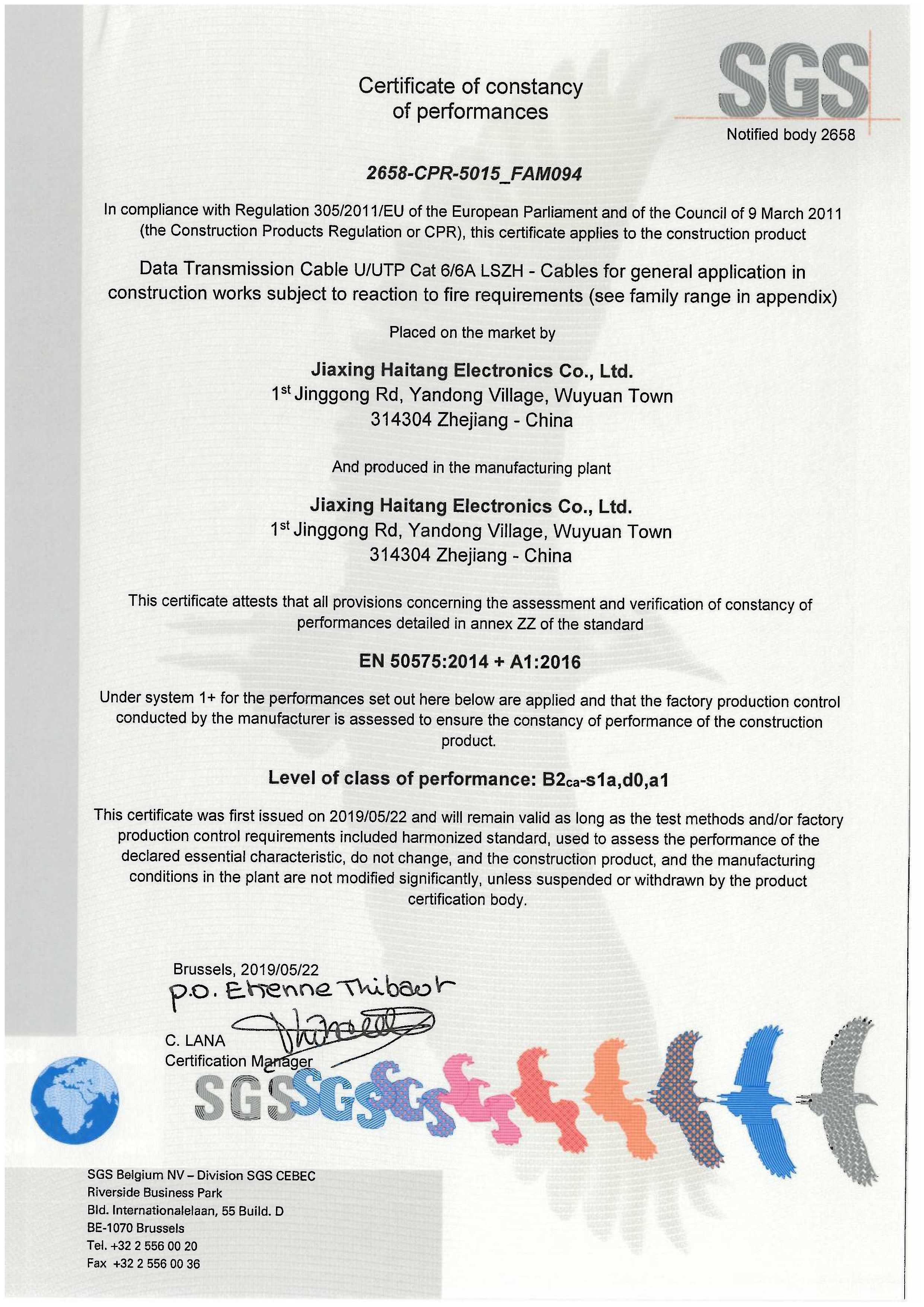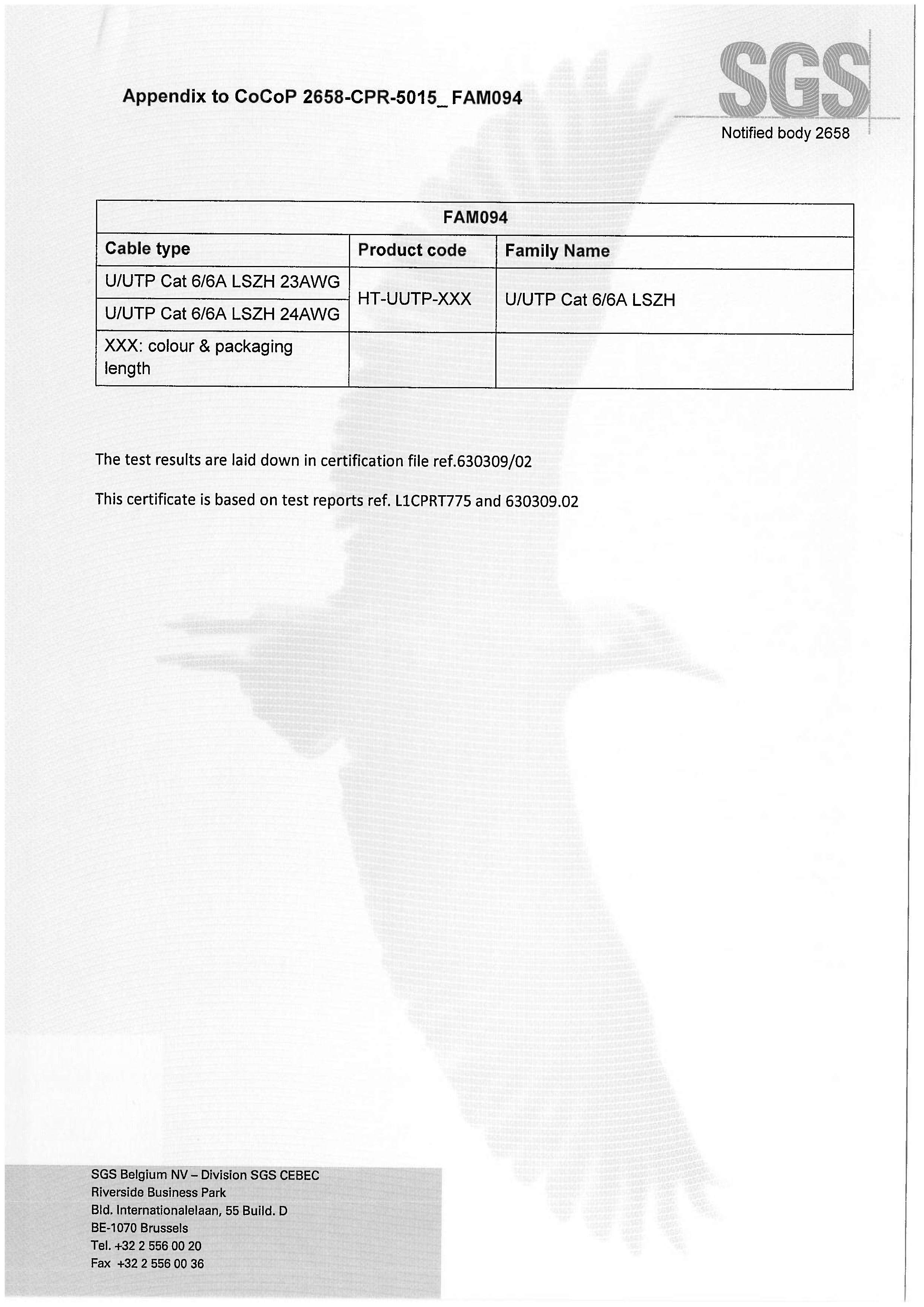 UUTP Cat66A LSZH SGS CPR B2級