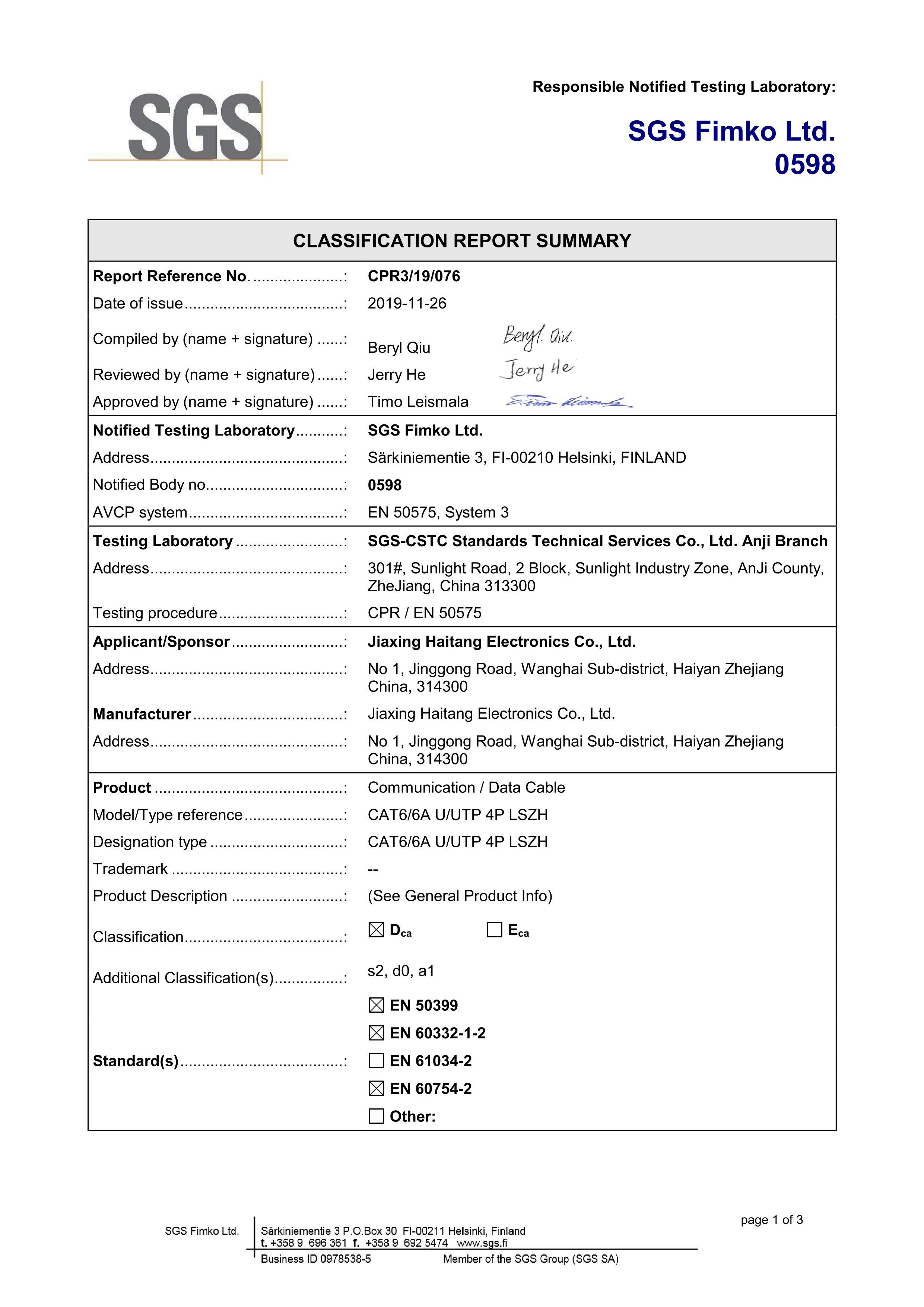 UUTP Cat66A LSZH SGS CPR B2級