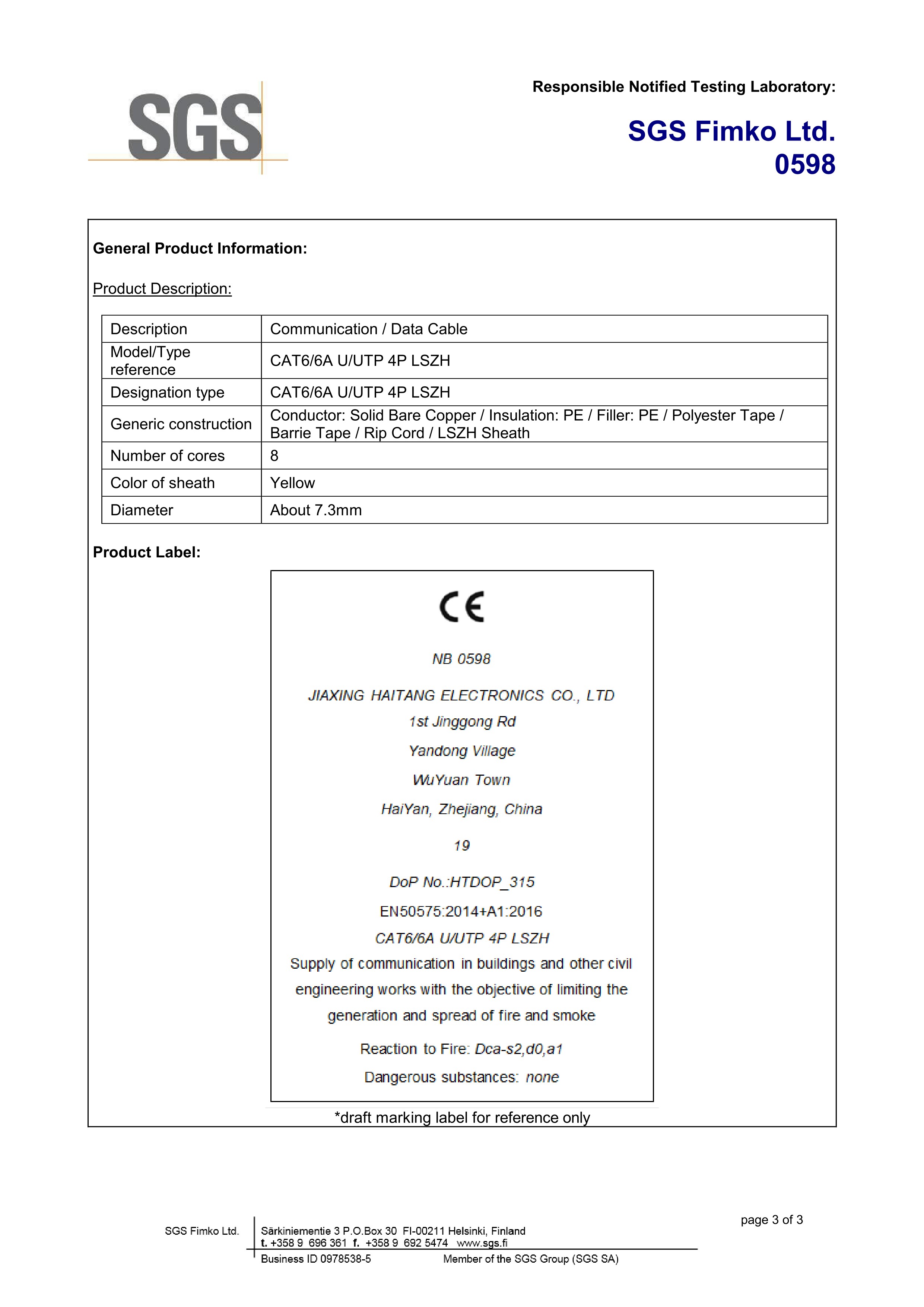 UUTP CAT66A雙面PET LSZH SGS CPR D級認(rèn)證